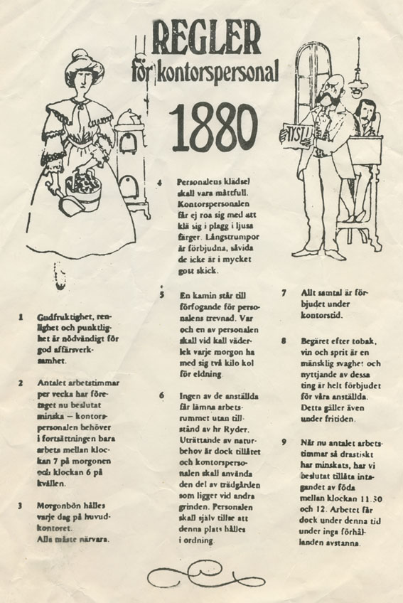 Kontorsfolklore, alltså humor som före internets tid cirkulerade på kontor och andra arbetsplatser före Internets tid, finns med på hemsidan som en undermeny till Humor-menyn. Det som finns där är huvusakligen sånt jag lade in när jag för några år sedan skapade hemsidan. Skulle nyss visa Natalia på hur det var på kontor förr och fick se att just den hade jag glömt lägga in den. Men nu är den på plats jämte en till jag fann.