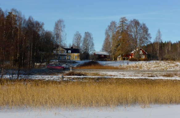 Natalia jobbade på Björnbyn, så jag tog en ensam promenad. Det fick bli årets första till längs Klarälvsbanan till Sjögränd. Väl där gick jag ut på viken, bl.a. för att ta en bild av Sjögränds Herrgård. När jag tagit en bild fick jag se Natalia med Peugeoten susa förbi uppe på stora vägen. Tänkte då. Tänk om jag sett bilen tidigare, så kunde jag åtminstone gjort ett försök att få med henne med bilen på en bild över herrgården …