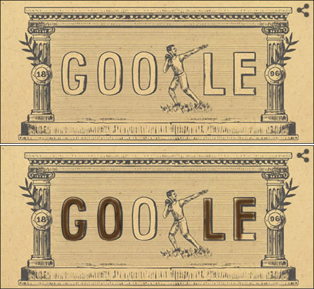 Idag hade de den översta bilden som dagens Google-bild – men med tanke på att US Masters nu står för dörren, borde de istället haft en bild av typ den nedersta, som jag själv kladdade till. Ja, självklart med kulstötaren utbytt mot en golfspelare. Men att själv göra den ändringen, tyckte jag var att ta i …