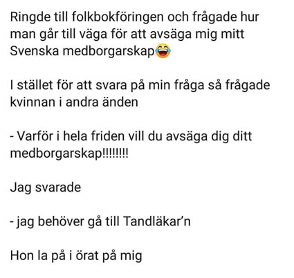 Äntligen i dessa coronatider har jag fått skratta ut. HJÄRTLIGT TACK. Hälsningar Ove.G 80bast.